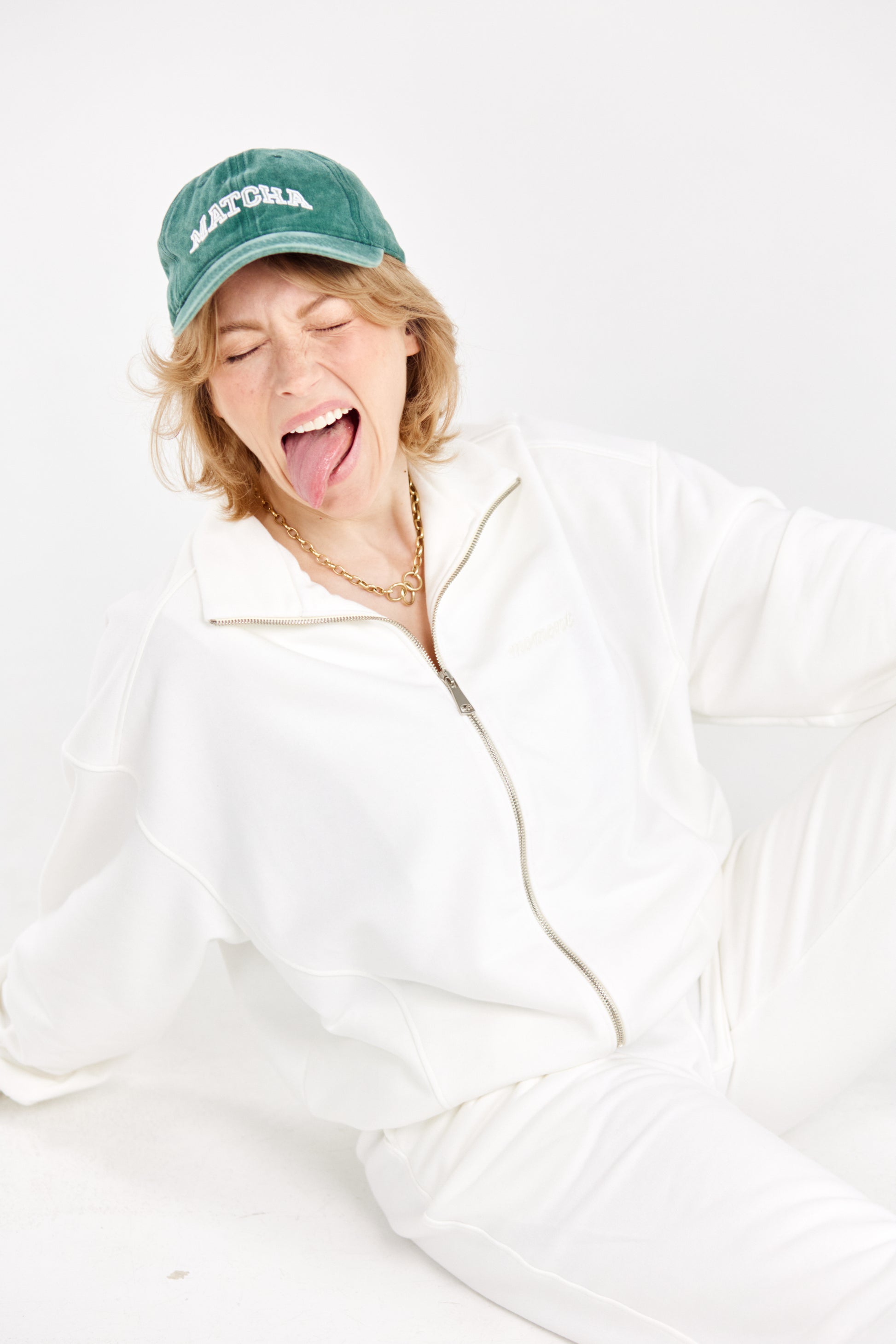 Vintage vibe, odrobina sportu, szczypta elegancji i maksimum wygody – taka właśnie jest bluza Siesta. Wysoka stójka układa się przy szyji tworząc klasyczny kołnierzyk, a po zapięciu srebrnego suwaka chroni przed chłodem. Obniżona linia ramion razem z szerokimi, przedłużonymi rękawami tworzą modny kształt litery T, który pięknie balansuje proporcje. Dzięki elastycznym ściągaczom łatwo złapiesz materiał, bluzując go tak, jak lubisz. Ukośne szwy oraz subtelny, perłowy haft nadają bluzie nonszalancki, kobiecy sznyt. Uszyta z enzymowanej dzianiny premium, jest miękka, odporna na piling, a pętelkowy spód działa jak termoregulator. Kolor Cream sprawia wrażenie niewymuszonej elegancji i przepięknie rozświetla skórę.